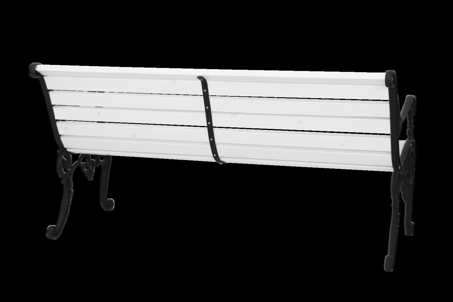 En klassisk parksoffa med anor från förr. De svarta, dekorativa gavlarna är av gjuten aluminium och du sitter skönt på ribbor av vacker furu som är antingen vit- eller brunlaserade. Tidlös klassiker!