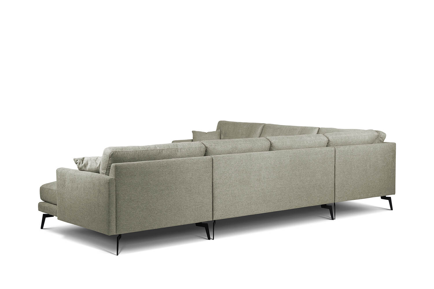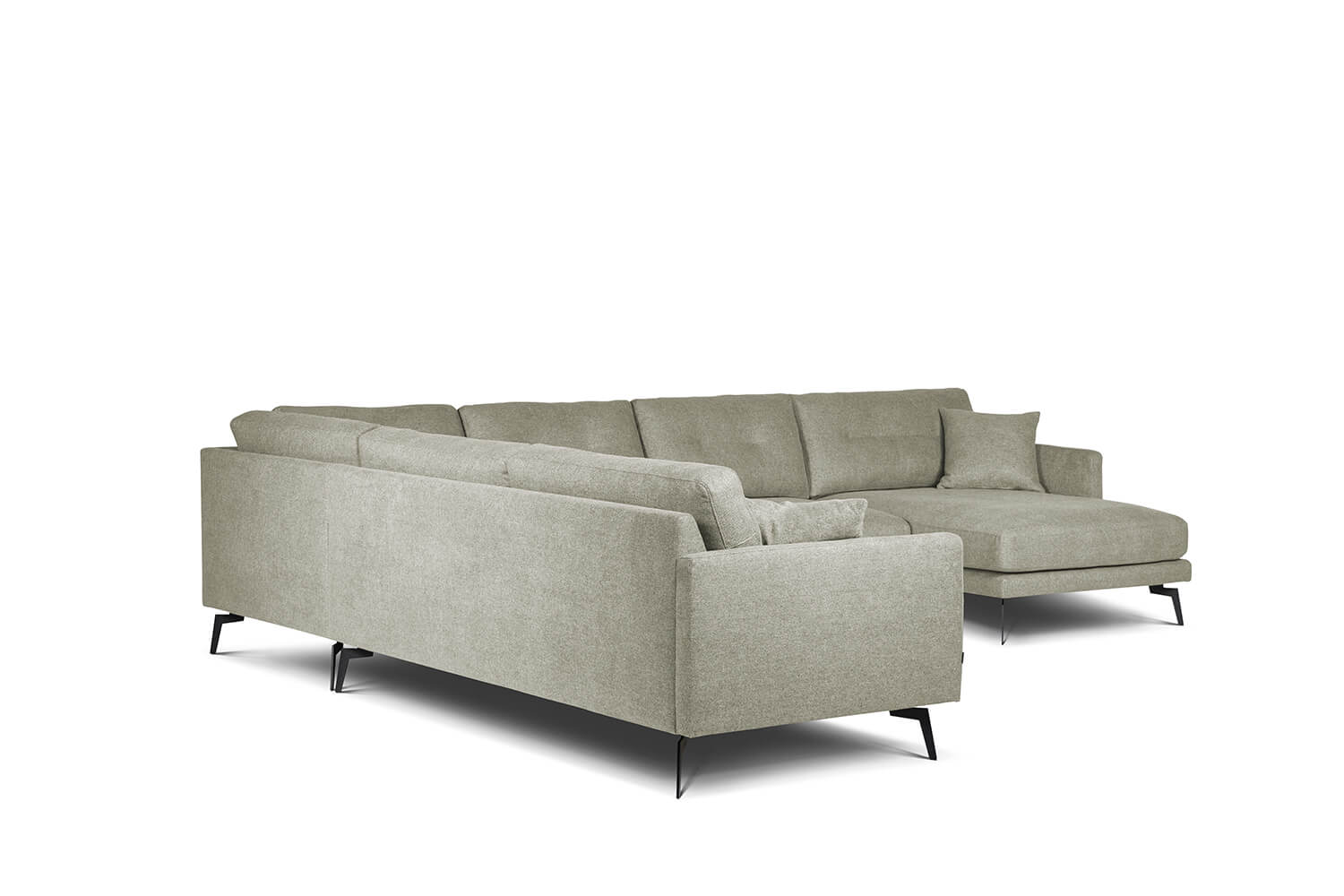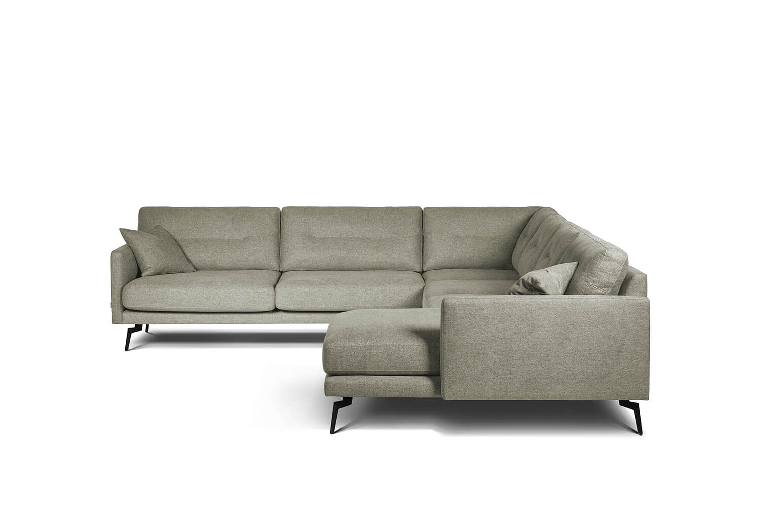 Showtime är en inbjudande och rymlig hörnsoffa med svarta metallben.