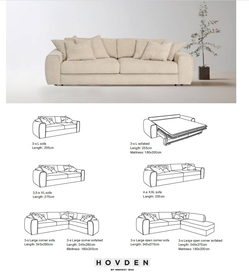 Anpassa Sweet efter din stil – den finns i olika tyger, färger och kan även fås som 3-sitsbäddsoffa, hörnbäddsoffa eller vanlig soffa.