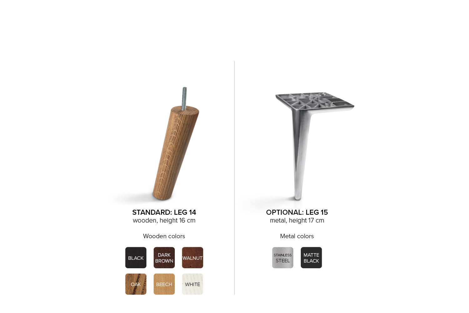 För att göra soffan ännu mer personlig kan du välja ben i flera olika färger och utföranden.