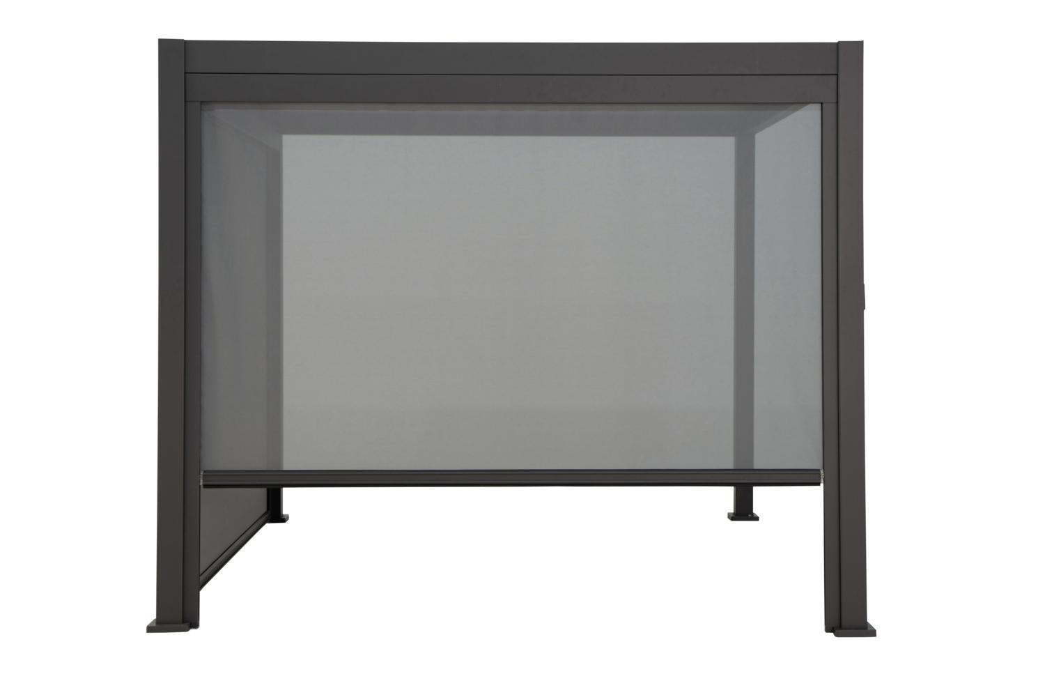 Premium pergola (3x4 m) i en robust konstruktion helt i aluminium (svart). Lamelltak som går att öppna och stänga beroende på hur mycket skydd som önskas. Dränering i stolparna. Sidogardin säljes separat.