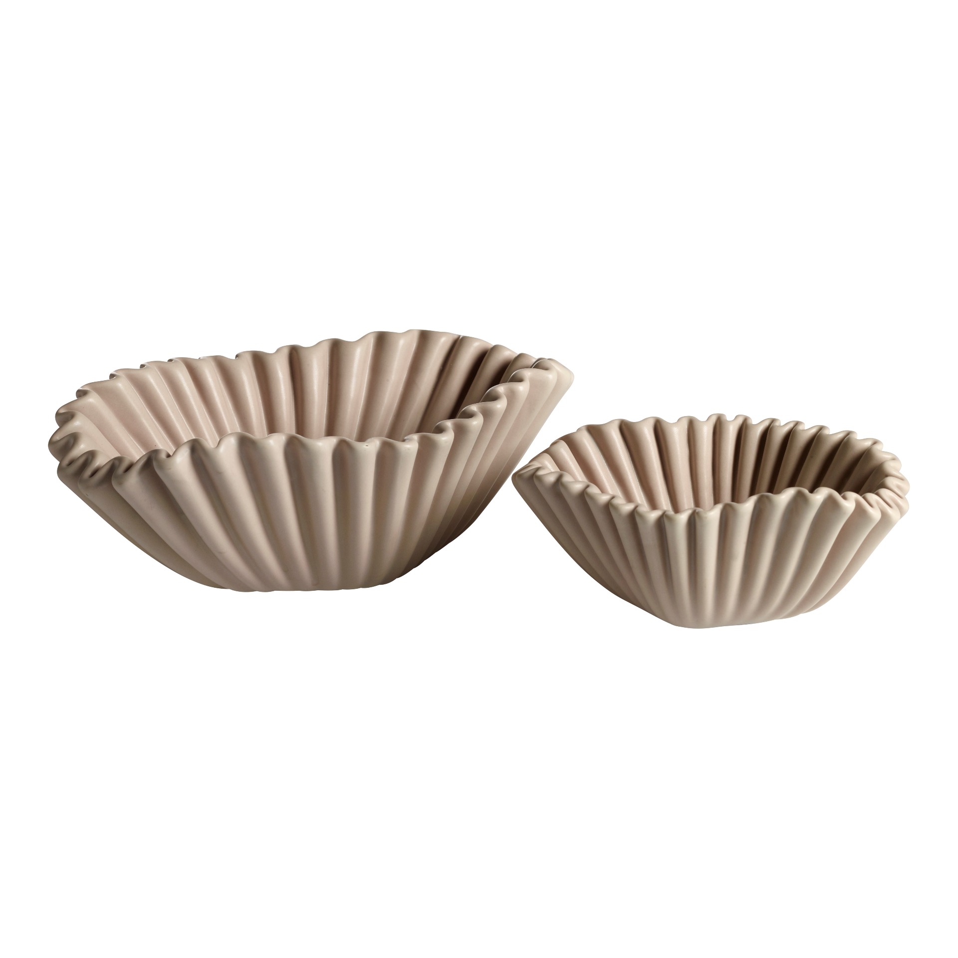 Oemotståndlig skål i keramik med oregelbunden form och veckad design.
