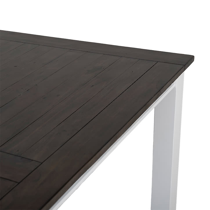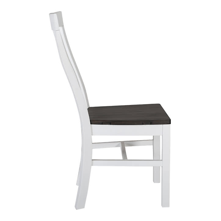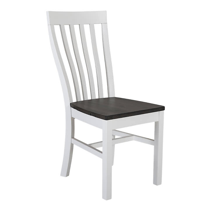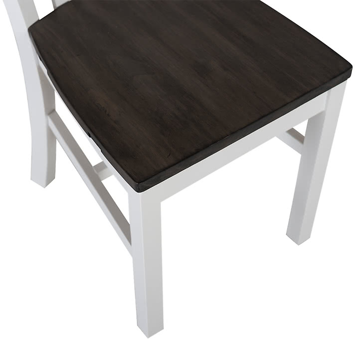 Bord och stolar har en vitlackad stomme och brunbets på toppytorna.