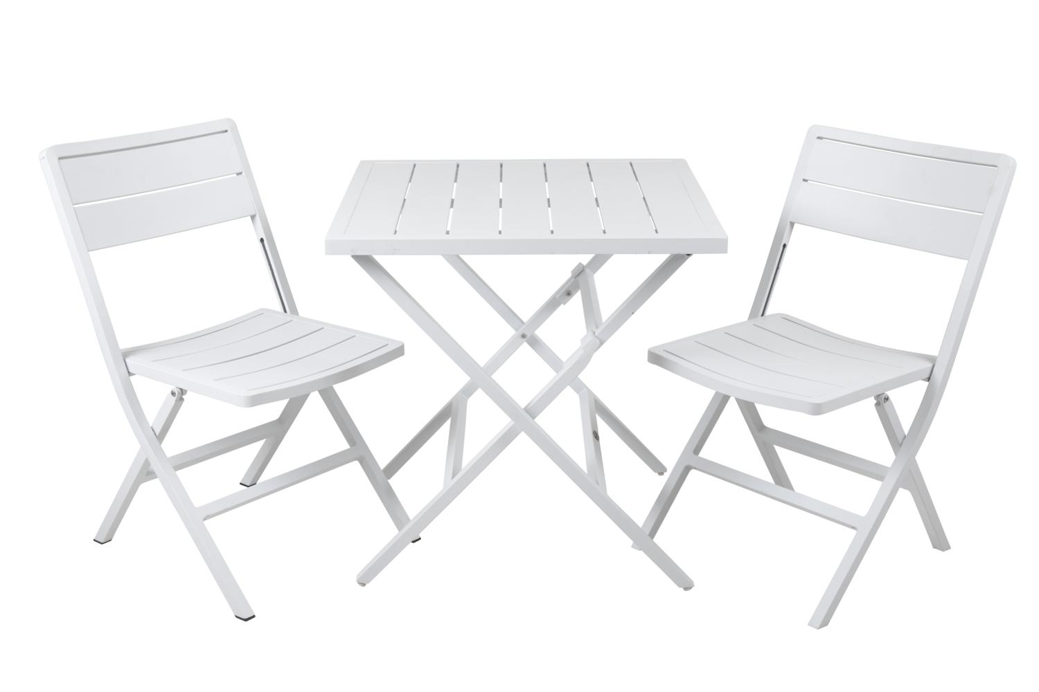 Wilkie från Brafab är en serie cafémöbler i aluminium bestående av moderna, fällbara stolar och bord i härliga kulörer. Perfekta som extramöbler att ta fram vid behov då de i ihopfällt läge tar lite plats, eller för den mindre balkongen.