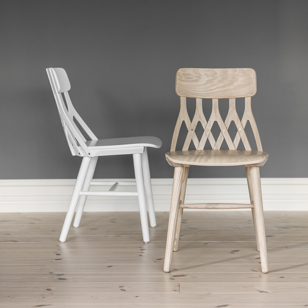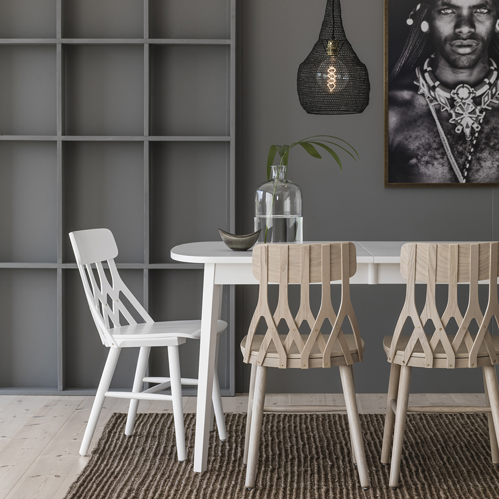 Y5 är en unik designerstol av massiv vitlackad björk. Bekväm och otroligt snygg att titta på. Finns i flera färger.